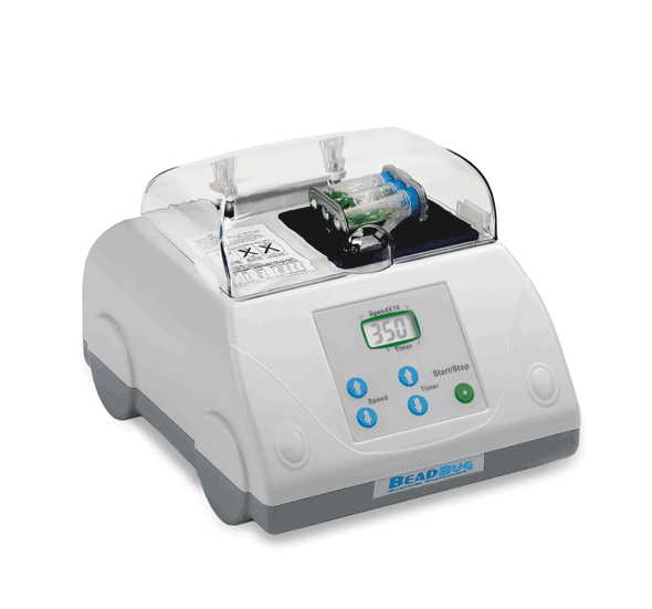 Simultaneous homogenization of up to 3 samples takes place (often within 45 seconds) inside the disposable 2ml screw cap microtubes. The optimized mixing motion causes rapid cell disruption through constant high velocity impact from the hardened micro-beads chosen specifically for your sample type.