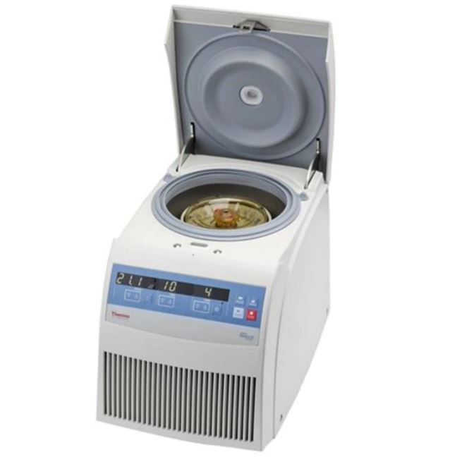 Save time with the fast sample processing of Thermo Scientific Freso 21 microcentrifuges, providing productivity, versatility, safety and convenience in a compact, easy-to-use lab instrument. Lightweight microcentrifuge rotors are designed to provide acceleration up to 21,100xg in as little as 12 seconds. Refrigeration offers cooling from room temperature to set temperature in just 9 minutes.