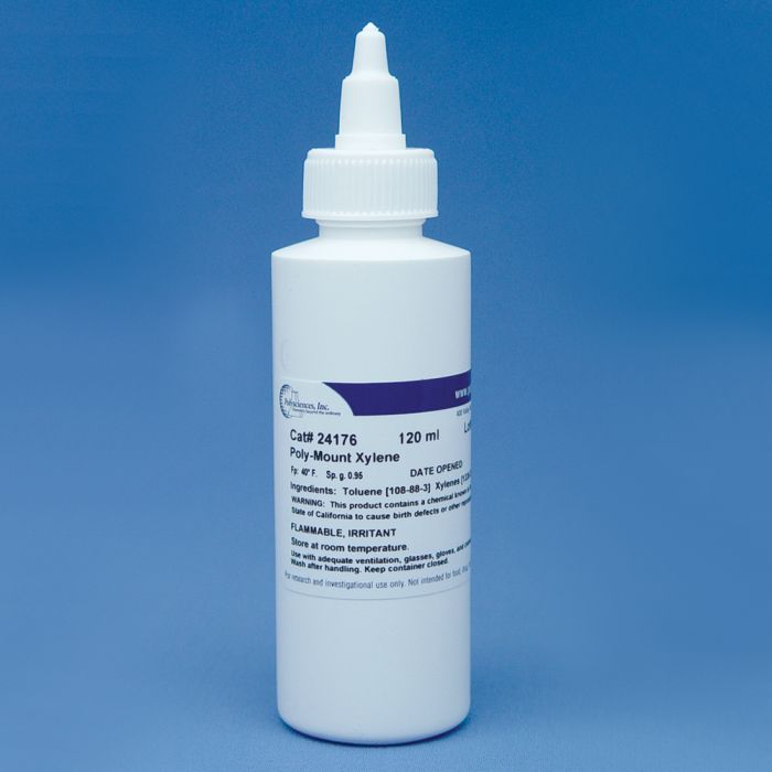 Xylene based routine coverslipping medium for histology and cytology slides. This acrylic medium provides superior optical clarity. Poly-Mount Xylene is also recommended for automated coverslipping instruments that use glass coverslips. It contains an anti-fade agent to prevent fading and yellowing with long term storage. Dries quickly for viewing, storage, and filing.